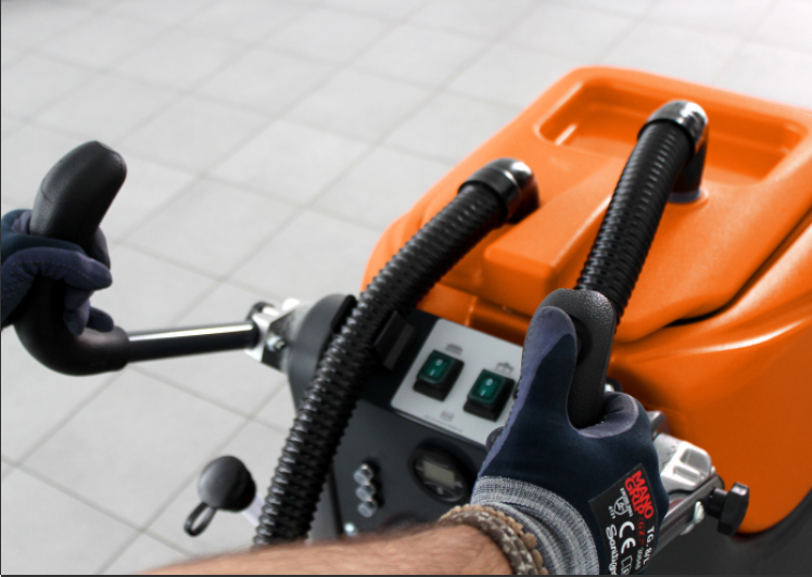 Desarrollamos un equilibrio perfecto hasta 45, para hacer que la conducción sea más ligera durante la limpieza, incluso sin un motor de tracción. Mediante la adición de las ruedas de soporte para el transporte, mover la máquina de un entorno a otro es igual de fácil: simplemente girando el 45 en las ruedas traseras con la ayuda de las manillas de agarre e imitarás mover un simple carro.